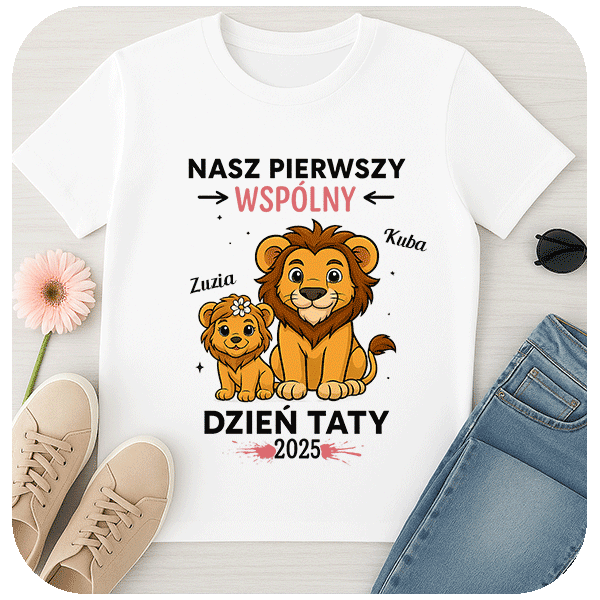 Wyjątkowa koszulka na Dzień Ojca z personalizacją imion. Idealny prezent dla taty, który świętuje pierwszy Dzień Ojca ze swoim dzieckiem. Spraw mu radość najlepszym prezentem na Dzień Ojca.