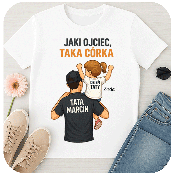 Personalizowana koszulka dla taty Jaki Ojciec Taka Córka to doskonały prezent dla taty i idealny prezent na dzień ojca. Stwórz niezapomniany upominek z imieniem córki.